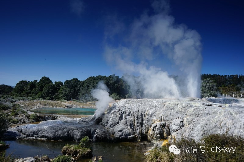 一到羅托魯阿立刻就能聞到它的特别,空氣中迷漫着濃郁的硫磺味,一股股的白氣象霧般地從地底下冒出,羅吐魯阿到處都是地熱資源,泥漿池、間歇泉、蒸氣湖比比皆是。