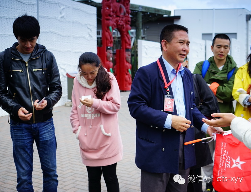 中旅的优秀导游吴波带队进入蒂普亚毛利文化村 接待爸爸去哪儿的时候他也带队来过这里